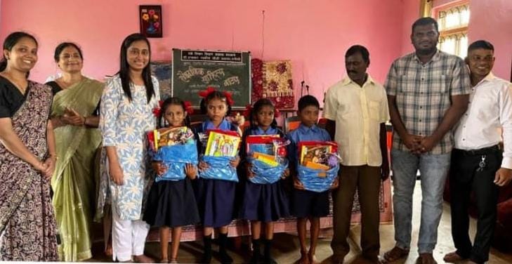 तळा, दि. २१- जागतीक योग दिनाचे औचित्य साधून पन्हेळी (गायमुख ) येथील कृष्णा खांडेकर कुटुंबीयांच्या वतीने अंगणवाडी, प्राथमिक व माध्यमिक शाळेतील विद्यार्थ्यांना शैक्षणिक साहित्याचे वाटप करण्यात आले.
